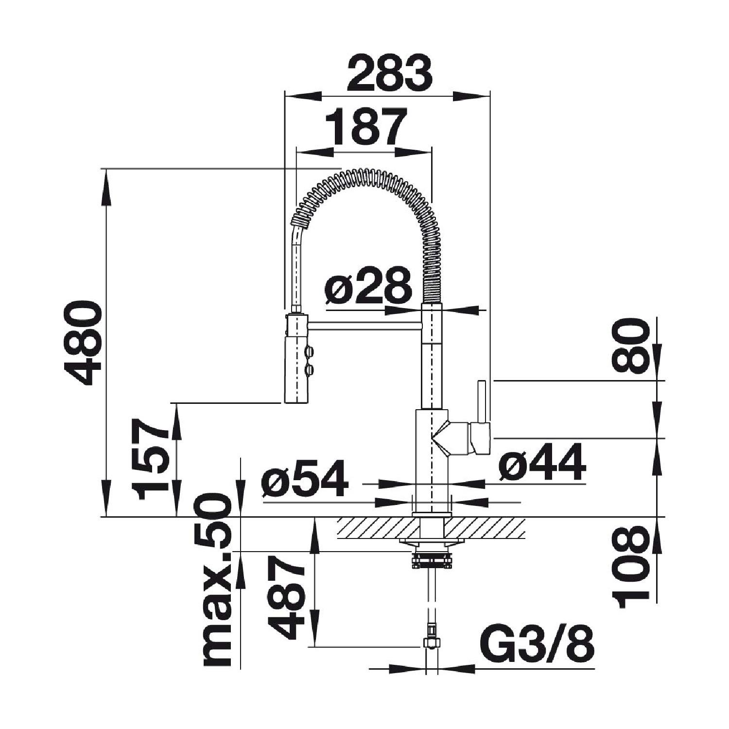 ● Hareketli duş ile esnek ağız (paslanmaz çelik yay)
