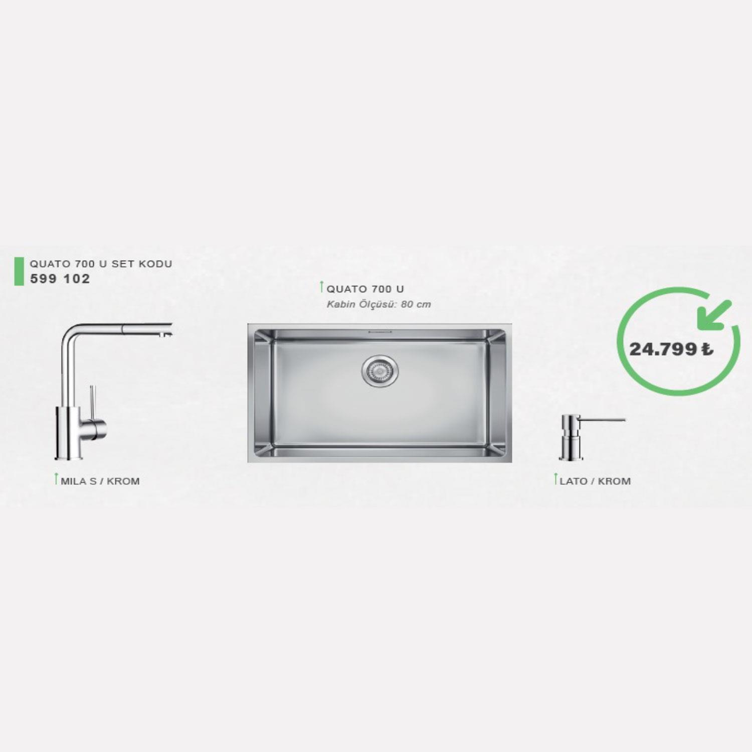 Blanco Quato 700 Paslanmaz Çelik Eviye, Batarya ve Sabunluk Seti