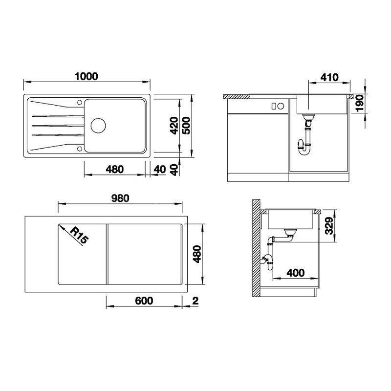 ● Tezgah kesim ölçüsü 980 mm x 480 mm