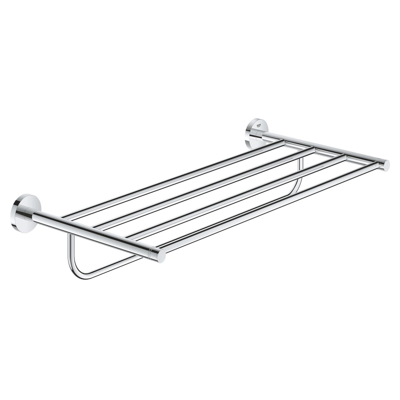 Banyo havlularınızı, hiç çaba harcamadan toplu, kuru ve düzenli bir şekilde saklayın. GROHE Essentials çoklu havluluk, 550 mm genişliğindedir ve üstündeki rafta temiz havluları saklarken havlulukta havlularınızı kurutmak için idealdir. Göz alıcı ve dayanıklı GROHE StarLight krom kaplama ile kaplanan bu kullanışlı banyo aksesuarı, uzun yıllar boyunca kusursuz görünümünü korur.