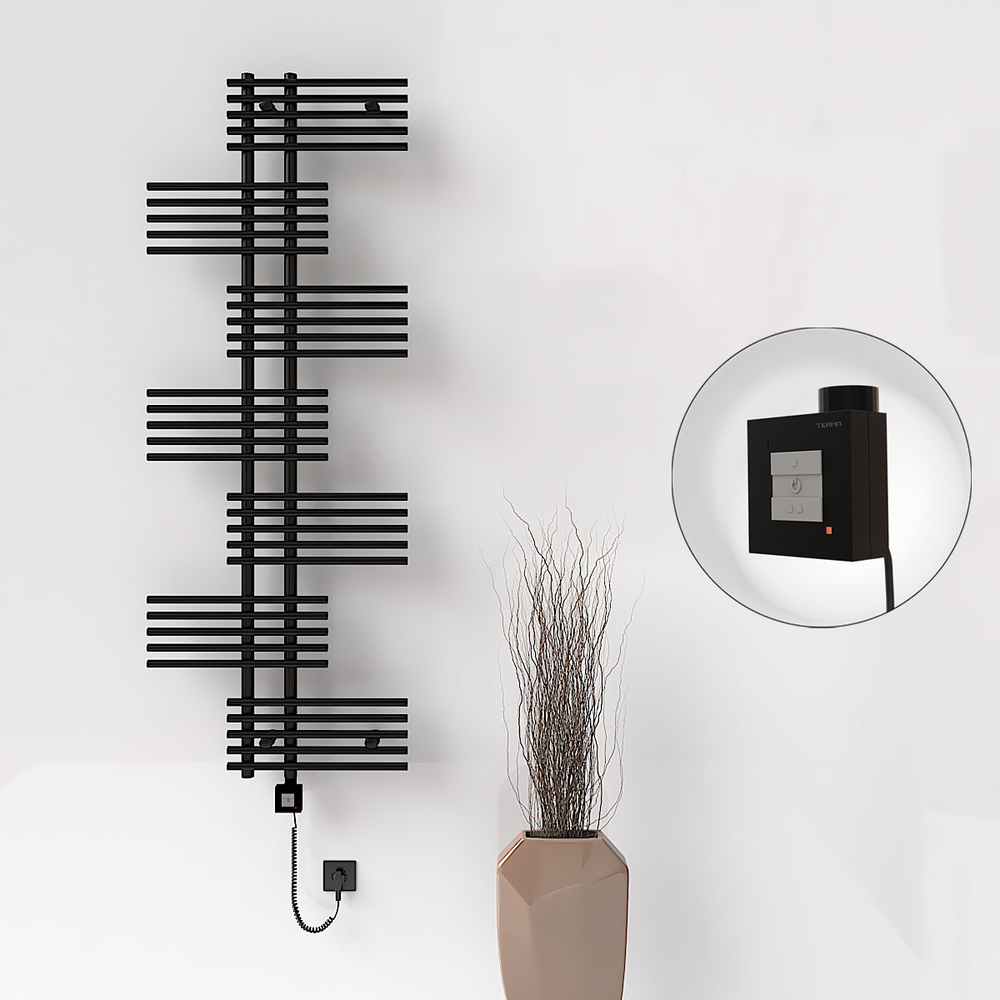 FIJI Elektrikli Havlupan 650x1762 Siyah Mat (KTX1 Termostat) 1000W Spiral Kablolu