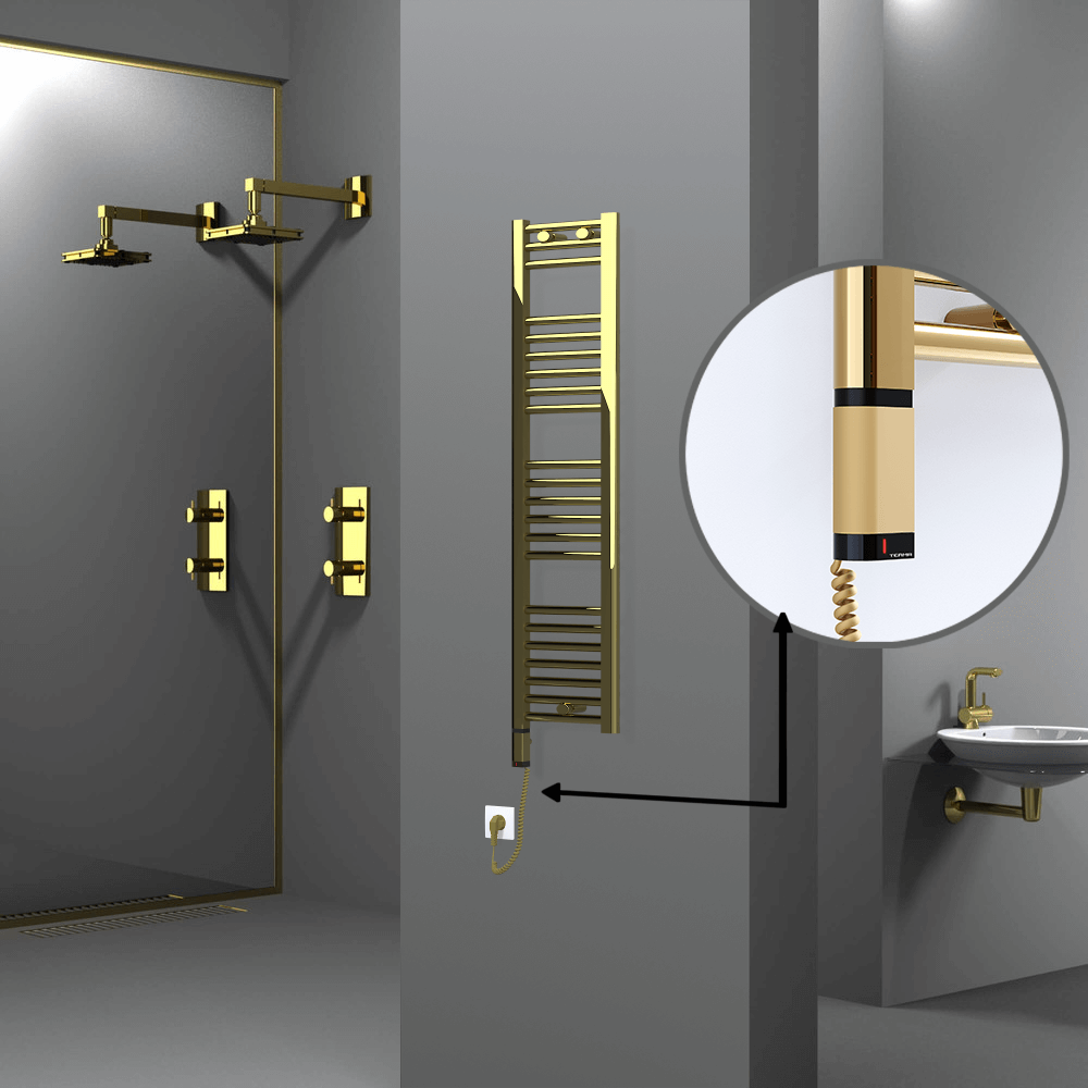HAITI model, 200 Watt, 300x1200 mm Ölçüsündeki, Çelik malzemeden üretilmiş Altın Renkli Elektrikli havlupanınız için ihtiyaç duyacağınız tüm havlupan ve elektrik kiti özelliklerini bu sayfada bulabilirsiniz.