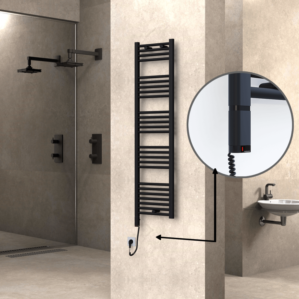 HAITI model, 600 Watt, 400x1500 mm Ölçüsündeki, Çelik malzemeden üretilmiş Mat Siyah Elektrikli havlupanınız için ihtiyaç duyacağınız tüm havlupan ve elektrik kiti özelliklerini bu sayfada bulabilirsiniz.