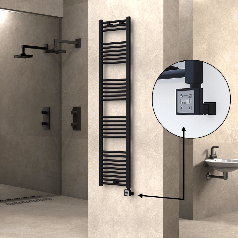 HAITI Elektrikli Havlupan 400x1800 Düz Siyah (KTX3 Termostat) 600W