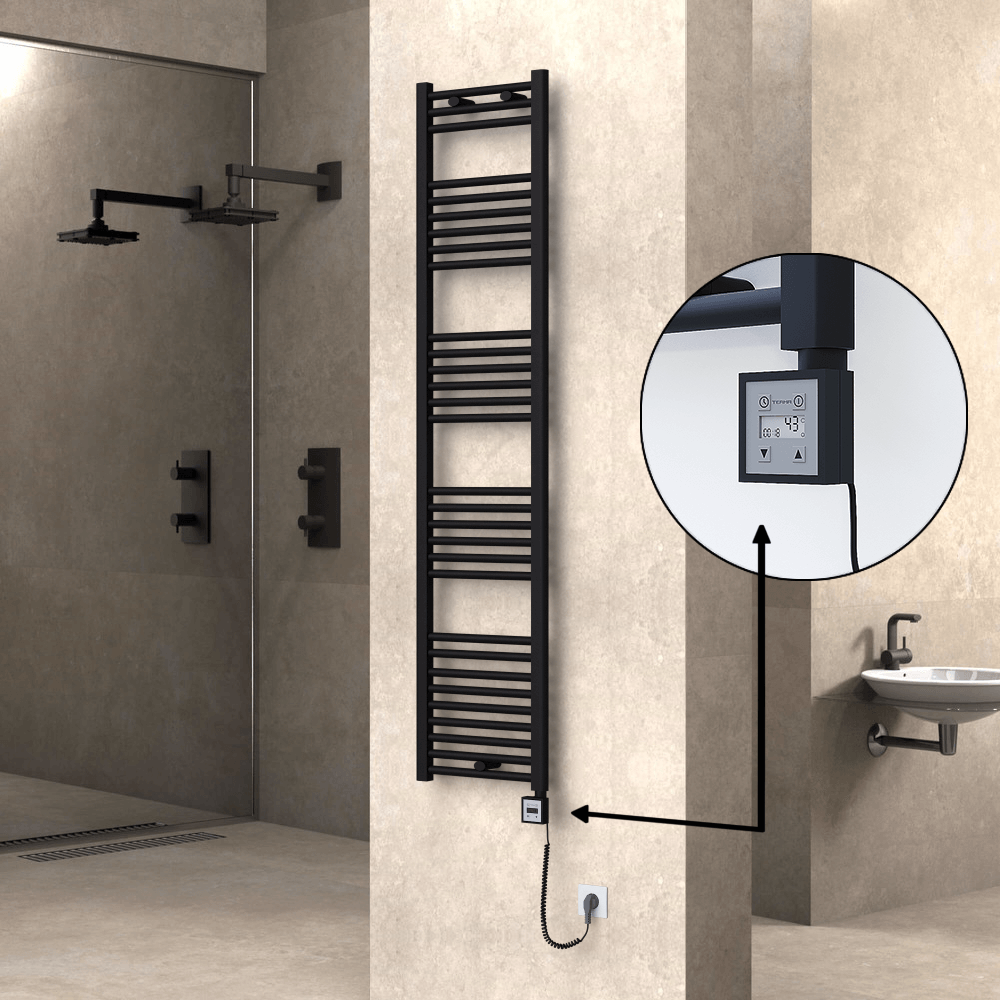 Şu an incelemekte olduğunuz, Haiti model, 600 Watt, 400x1800 mm ölçüsündeki, Çelik malzemeden üretilmiş Mat Siyah elektrikli havlupanınız için ihtiyaç duyacağınız tüm havlupan ve elektrik kiti özelliklerini hemen aşağıda bulabilirsiniz.