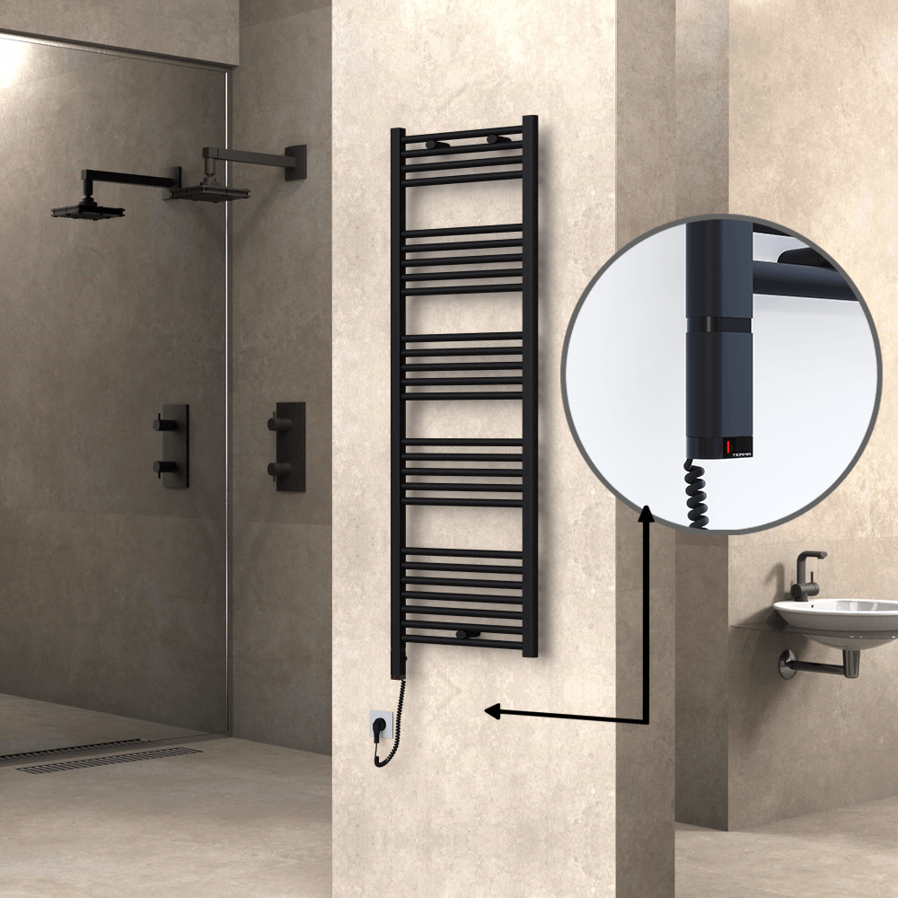 HAITI model, 600 Watt, 500x1500 mm Ölçüsündeki, Çelik malzemeden üretilmiş Mat Siyah Elektrikli havlupanınız için ihtiyaç duyacağınız tüm havlupan ve elektrik kiti özelliklerini bu sayfada bulabilirsiniz.