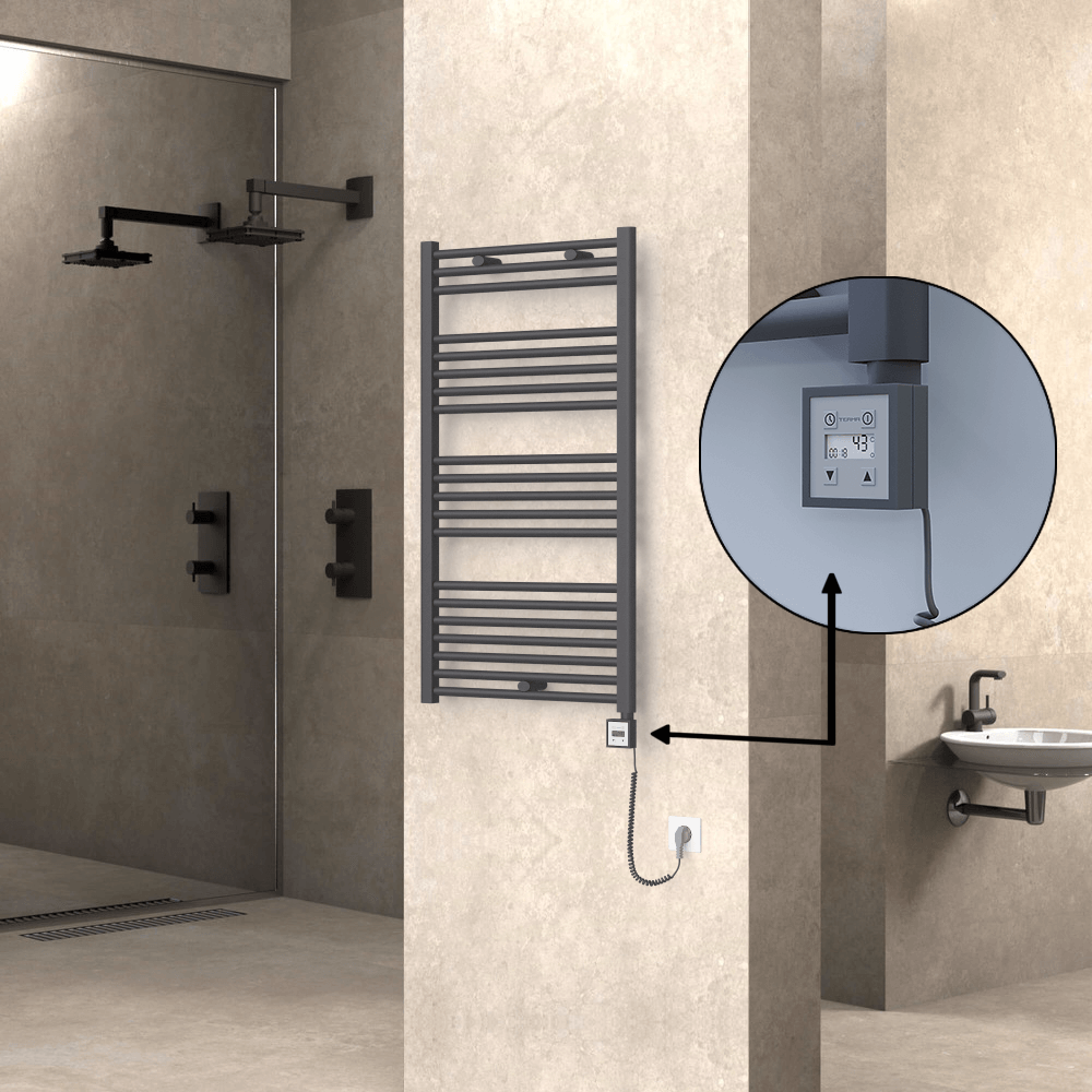 HAITI Elektrikli Havlupan 600x1100 Düz Antrasit (KTX3 Termostat) 600W Spiral Kablolu