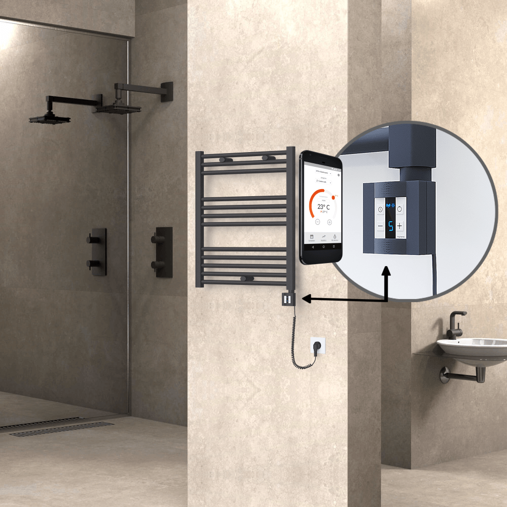 HAITI Elektrikli Havlupan 600x700 Düz Antrasit (KTX4 Termostat) 300W Spiral Kablolu