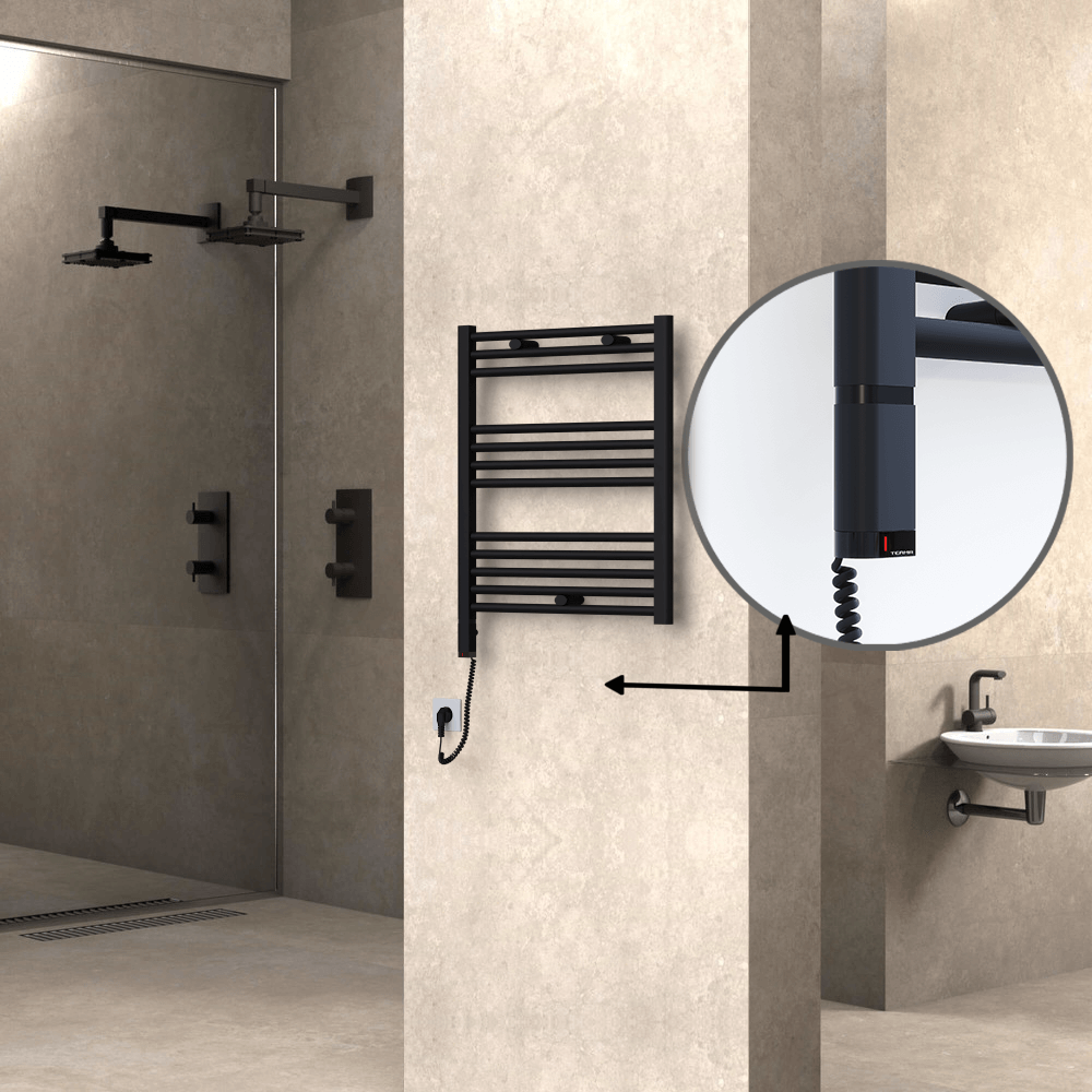 HAITI model, 300 Watt, 600x700 mm Ölçüsündeki, Çelik malzemeden üretilmiş Mat Siyah Elektrikli havlupanınız için ihtiyaç duyacağınız tüm havlupan ve elektrik kiti özelliklerini bu sayfada bulabilirsiniz.