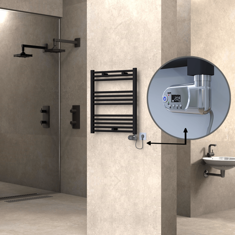 HAITI Elektrikli Havlupan 600x700 Düz Siyah (Thesis Termostat) 300W