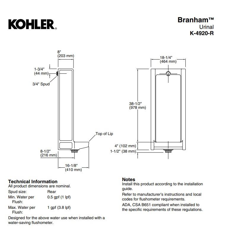 Kohler Branham Boy Pisuvar Beyaz