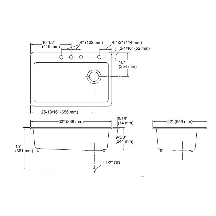 Kohler Eviye Riverby 4 Delikli Döküm, Beyaz