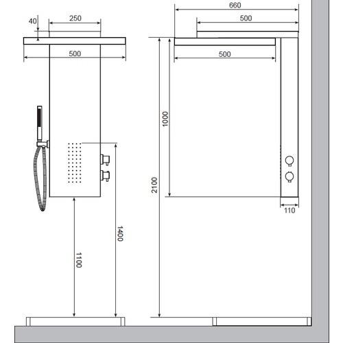 ● Duş kulesi yerden yükseklik 210 cm